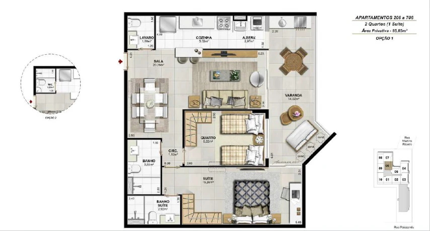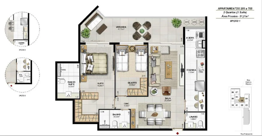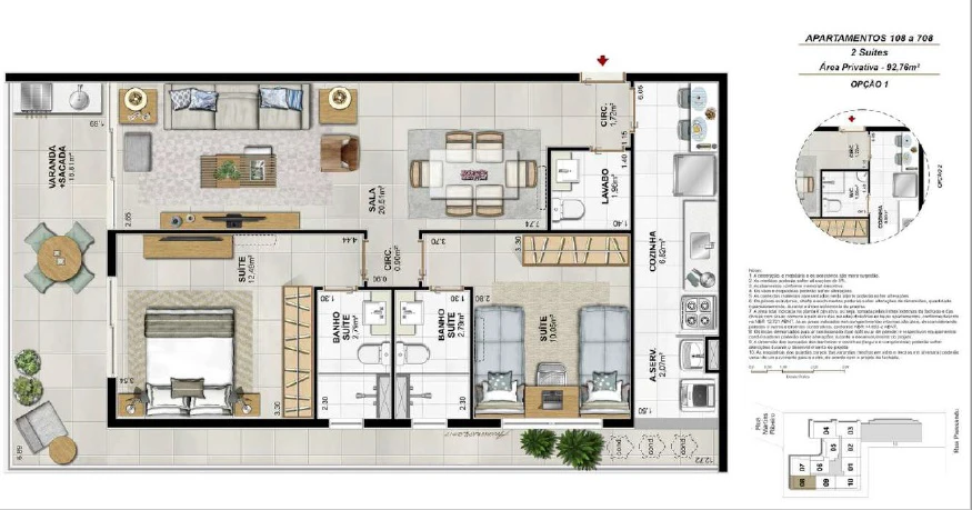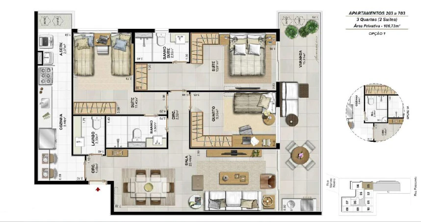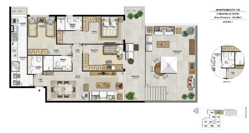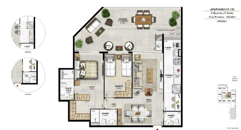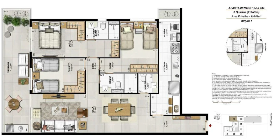 Apartamentos de 3 Quartos com 105m²até 116m²;