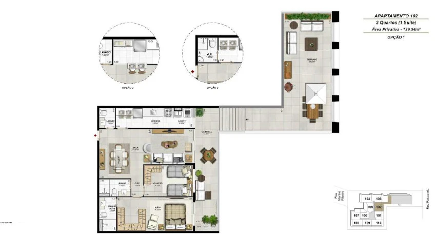 Apartamentos Garden de 2 quartos com 105m² até 139m²;