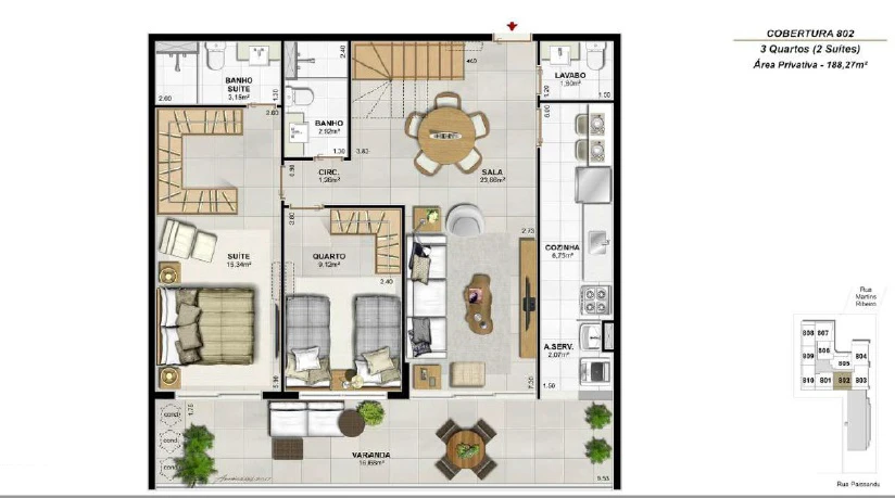 Coberturas Dúplex de 3 Quartos 150m² até 194m²;